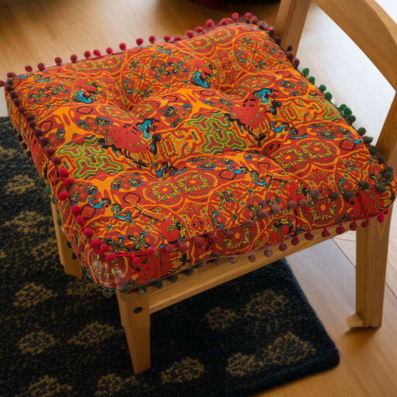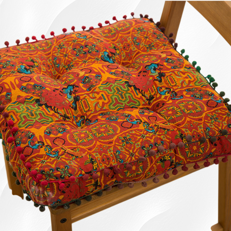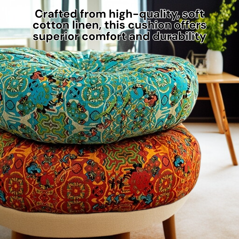 ● Crafted from high-quality, soft cotton linen, this cushion offers superior comfort and durability, making it perfect for prolonged sitting on chairs, floors, or benches.
